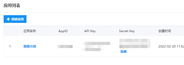 5.创建完成后获取到AppID、API Key、Secret Key: