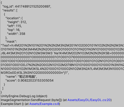 var results = ImageSegmentation.SendRequest(File.ReadAllBytes(Application.dataPath + "/测试.jpg"));