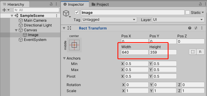 首先创建一个Image来放置我们的测试图片,Canvas、Image大小也设为测试图片的大小640 * 359: