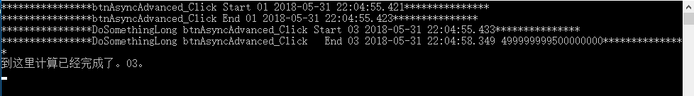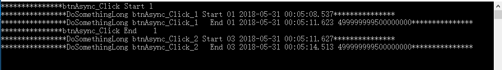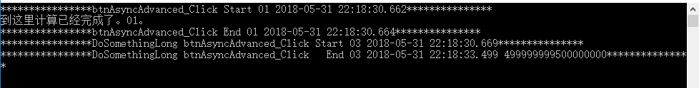 Console.WriteLine($"****************btnAsyncAdvanced_Click End {Thread.CurrentThread.ManagedThreadId.ToString("00")} {DateTime.Now.ToString("yyyy-MM-dd HH:mm:ss.fff")}***************");