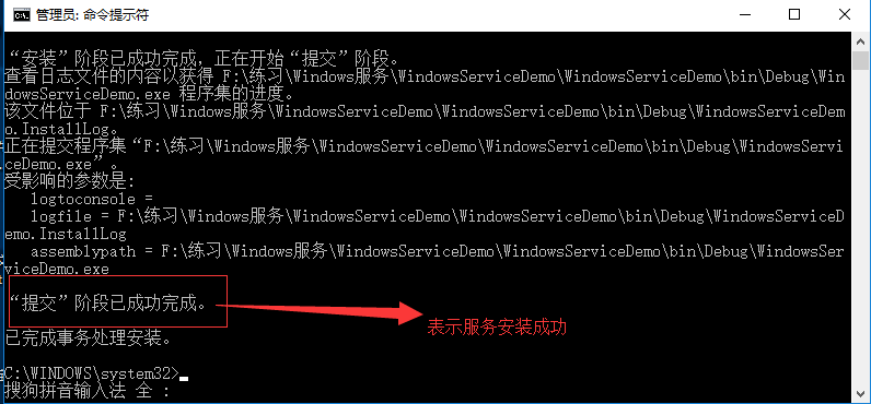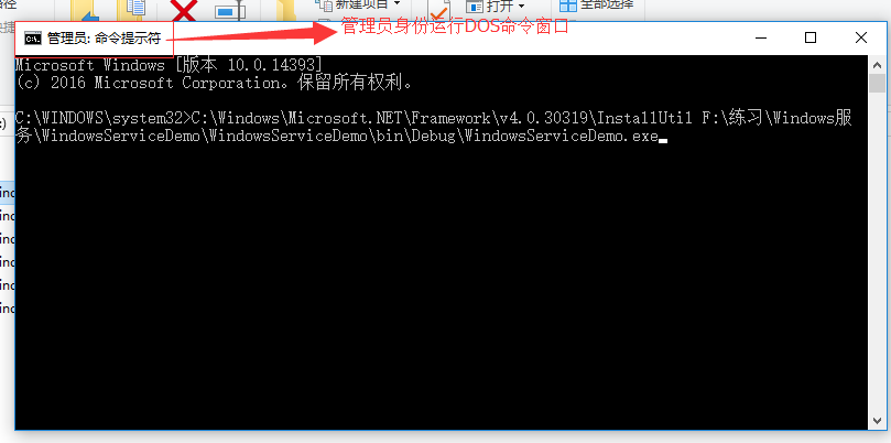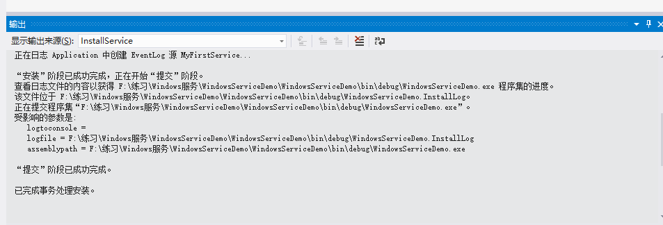 %SystemRoot%\Microsoft.NET\Framework\v4.0.30319\installutil.exe F:\练习\Windows服务\WindowsServiceDemo\WindowsServiceDemo\bin\Debug\WindowsServiceDemo.exe
