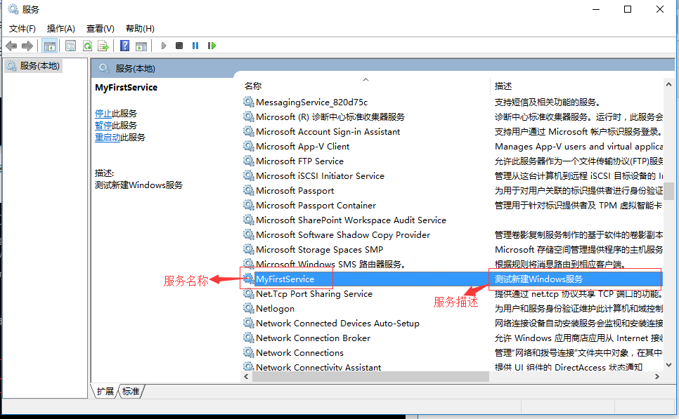 7、至此,服务安装成功,在系统服务界面可以查看到新安装的服务。