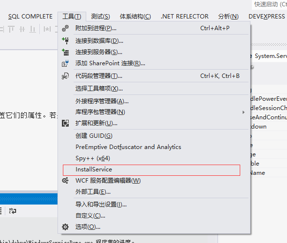 5、点击菜单栏的工具选项,可以看见新添加的"InstallService"命令