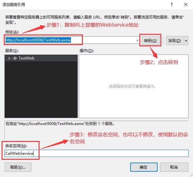 创建好了WebService以后,把WebService部署到IIS上,并确保可以访问