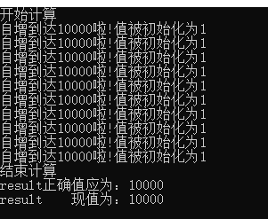 Console.WriteLine($"result正确值应为:{10000 * 10}");