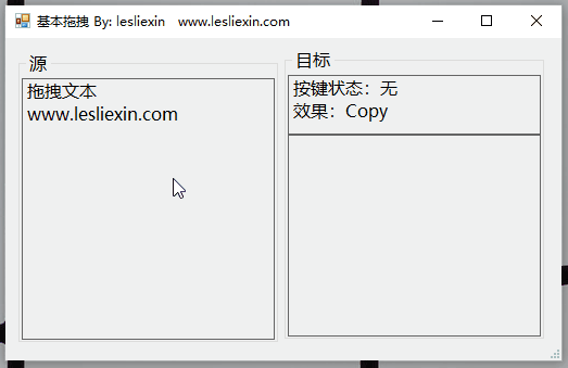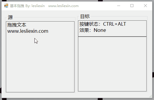 演示程序的效果,就是拖动标签(Label)到另一个标签(Label)上,根据是否按着Shift、Ctrl等键,实现不同的效果。
