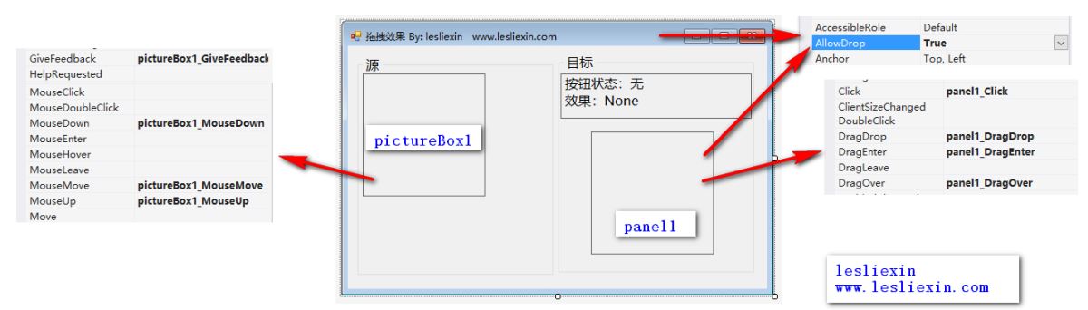 此处和上文的实现原理是一样的,要实现DragEnter、DragDrop、DragDrop等事件。