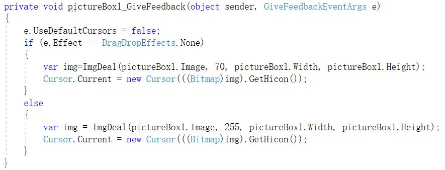 接着,在GiveFeedback中,针对不同的拖放状态,设置不同的鼠标。