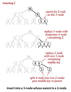 但是,如果未命中的查找结束于一个 3- 结点,就要麻烦一些。