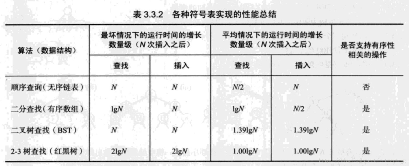 研究红黑树的性质就是要检查对应的 2-3 树并对相应的 2-3 树进行分析过程。所有基于红黑树的符号表实现都能保证操作的运行时间为对数级别(范围查找除外)。