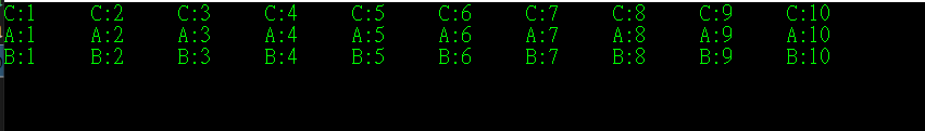 Console.Write(Thread.CurrentThread.Name + ":" + i + "\t");