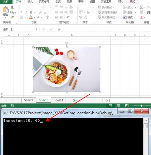 读取结果如图,图片所在位置为第八行、第四列: