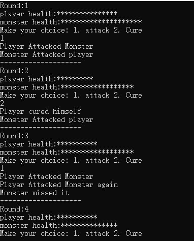 Console.WriteLine("Make your choice: 1. attack 2. Cure");