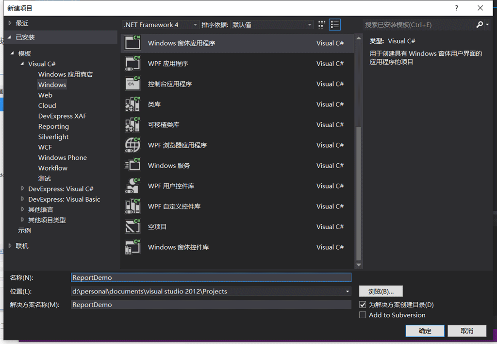 首先我们使用VS新建一个WinForm工程,这里我使用的是VisualStutio2015版本