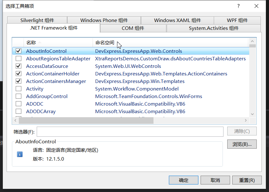 然后右键刚刚新建的选项卡->选择项,打开选择控件的对话框