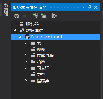 然后我们可以在服务器资源管理器中看到我们的数据库