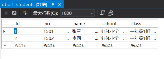 更状态全部打钩之后,表就创建好了,我们刷新服务器资源管理器,然后打开表数据,添加一些数据进去