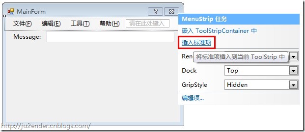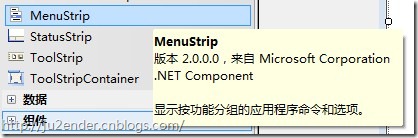 下面,再加入菜单栏,当单击帮助项时弹出帮助文档,添加菜单栏控件MenuStrip: