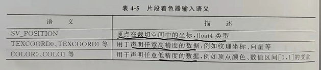 与顶点函数的输入语义不同,TEXCOORDn不再特指模型的UV坐标,COLORn也不在特指顶点颜色。它们使用范围更广,可以用于声明任何符合要求的数据。
