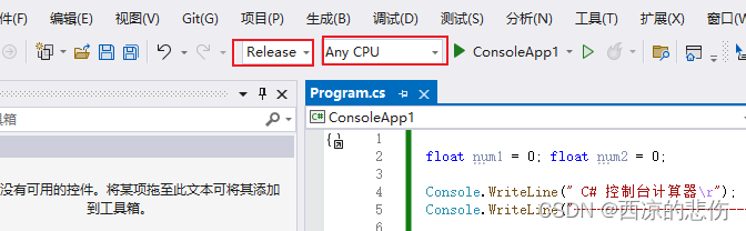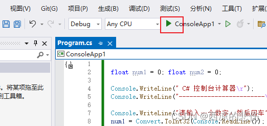 (你会发现代码里没有Main函数,从 C# 9 开始,在控制台应用程序项目中你可以不必显式声明包含Main方法,编译器会为应用程序生成一个Main类和方法入口点。参考说明:Top-level statements - programs without Main methods)