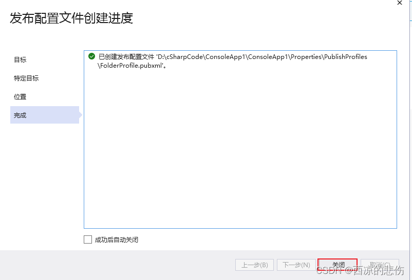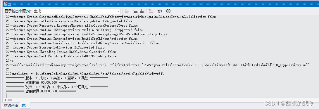 等控制台提示发布成功,就可以在输出目录的 bin/Release下的对应的文件夹下找到生成的exe文件,就可以把这个文件发给其他人使用了。