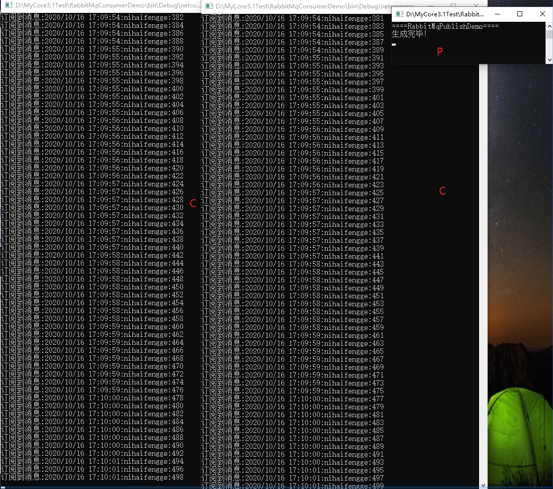 5:具体C#怎么使用RabbitMq?下面直接上code和测试截图了(Demo环境是.NetCore3.1控制台+Docker上的RabbitMQ容器来进行的)