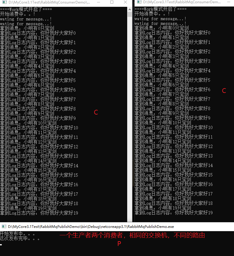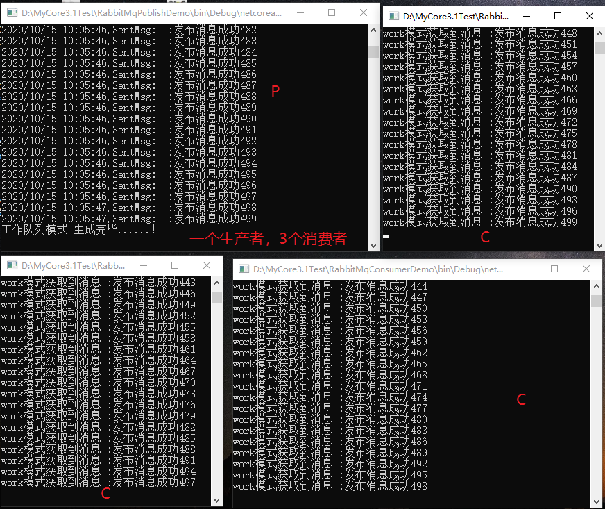 Console.WriteLine("工作队列模式 生成完毕......!");