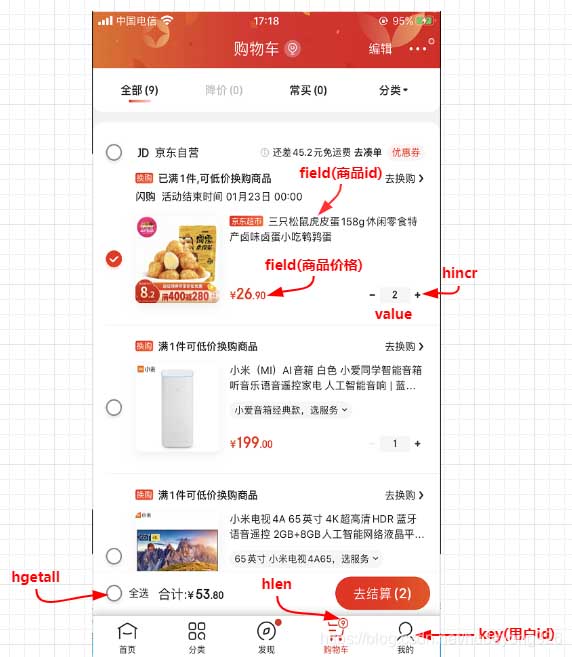 第一种方式将用户 ID 作为查找 key,把其他信息封装成一个对象以序列化的方式存储,这种方式的缺点是,增加了序列化/反序列化的开销,并且在需要修改其中一项信息时,需要把整个对象取回,并且修改操作需要对并发进行保护,引入CAS等复杂问题。
