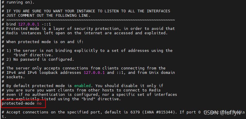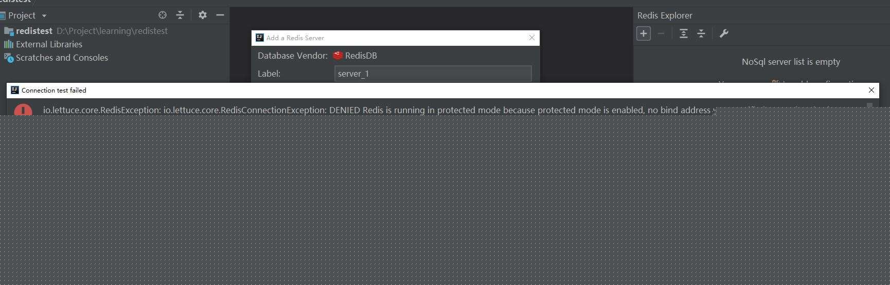 redis.config配置文件中有个配置protected-mode——保护模式。默认情况下redis是启用保护模式的,只有本机客户端可以连接(即redis安装的机器)。此时其他主机上的客户端无法连接该redis。可以通过两种方式解决。