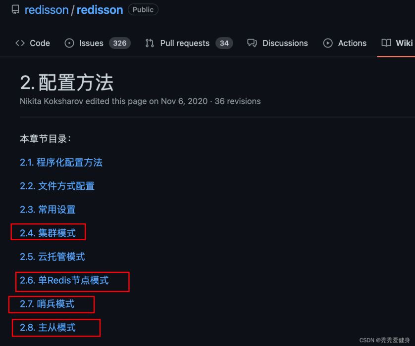 具体配置方式见Redisson的GitHub(https://github.com/redisson/redisson/wiki/2.-%E9%85%8D%E7%BD%AE%E6%96%B9%E6%B3%95#21-%E7%A8%8B%E5%BA%8F%E5%8C%96%E9%85%8D%E7%BD%AE%E6%96%B9%E6%B3%95)