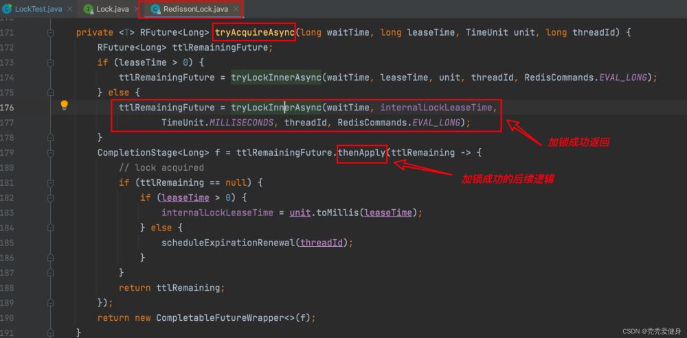 如果在加锁时指定了leaseTime,加锁成功之后,后台并不会启动一个定时任务watchdog做锁续约;key存活leaseTime 毫秒之后便会自动被删除、key对应的锁也就自动被释放了;无论当前线程的业务逻辑是否执行完毕。