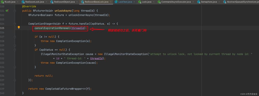 通过LUA脚本释放锁成功之后,会将看门狗杀死;