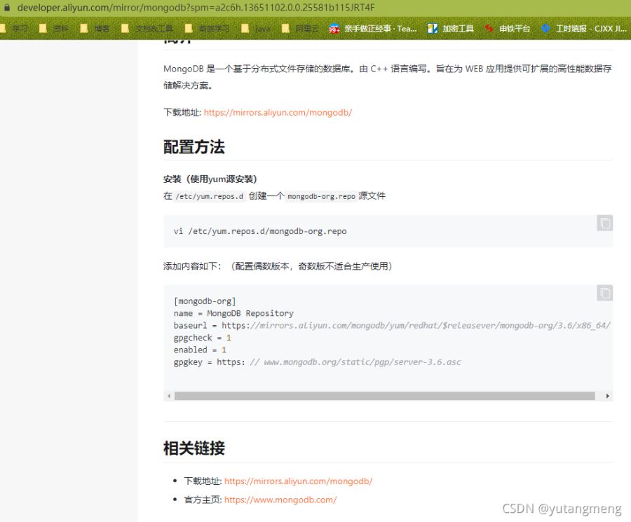 baseurl:在阿里镜像中,点击下载地址后,选择的mongodb的版本的链接,根据选择的版本不同而不同,其他的不用变。