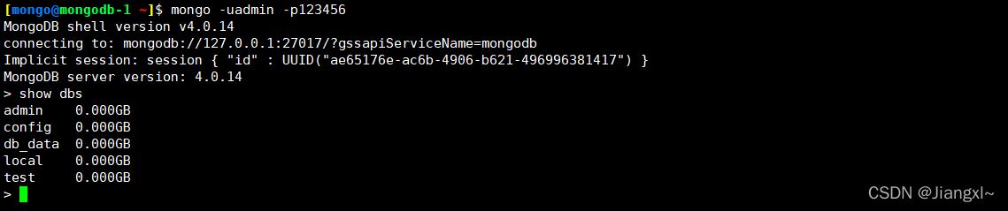 [mongo@mongodb-1 ~]$ mongo -uadmin -p123456