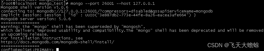 用命令mongo --port 26001 --host 127.0.0.1