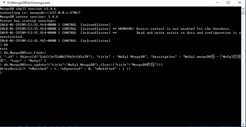 - update:update的对象和一些更新的操作符(如$set,Sinc......)等,也可以理解为sql update查询内set后面的。