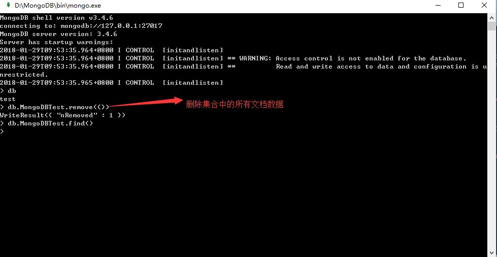 在上面的例子中,MongoDBTest是我们的集合名,如果该集合不在该数据库中,MongoDB会自动创建该集合并插入文档。doc是定义的变量,可以以变量的形式插入集合。