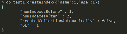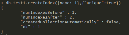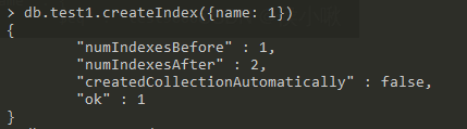 给name创建索引之前,_id字段默认为索引,创建后集合有两个索引,"_id"和"name"。