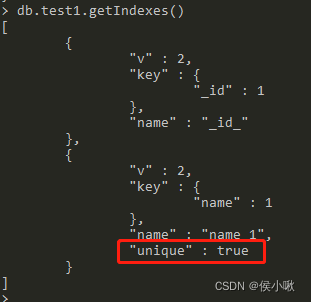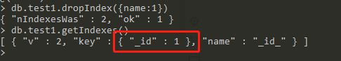 如图,只剩下了"_id"一个索引。"name"索引已被删除。