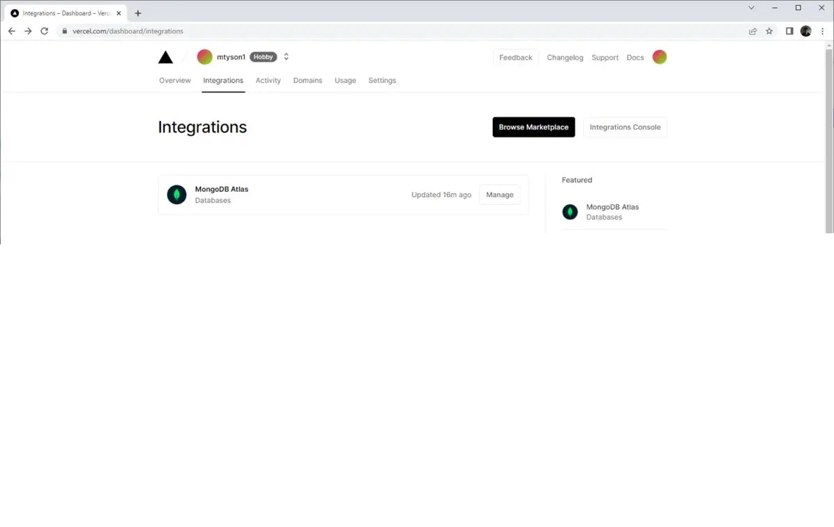 屏幕1.添加MongoDB Atlas集成到Vercel