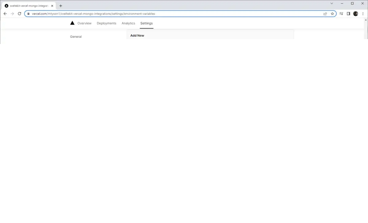 一旦这样做了,Vercel项目将自动访问我们需要的环境变量(MONGODB_URL),以便轻松地连接到数据存储。