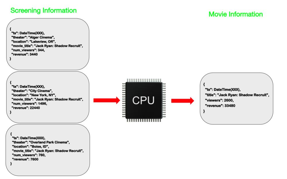 在这个场景中,计算模式的思路是:每一次更新放映场次数据的时候,将这个放映场次的人数汇总到一个文档当中,这个文档直接面向用户的查询。