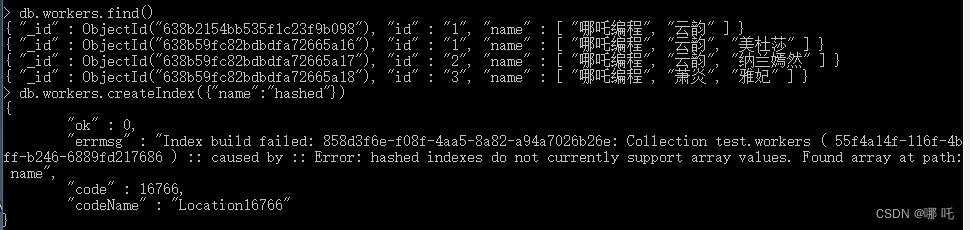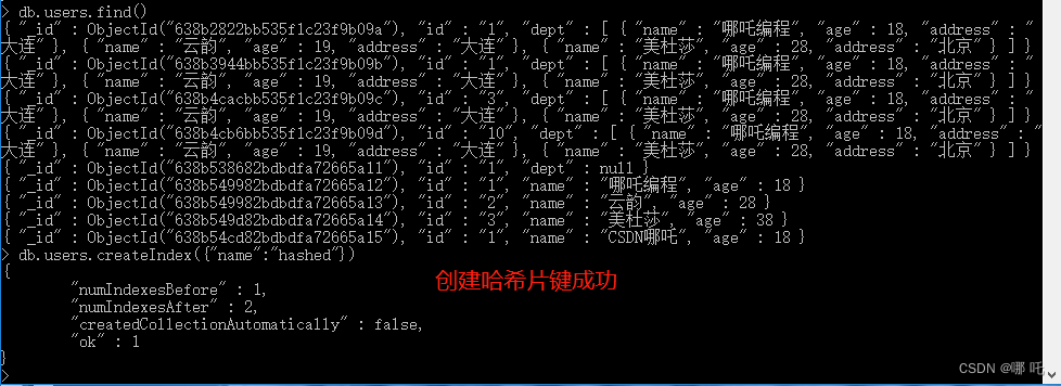 有一点需要注意,哈希片键的字段,不能是数组。