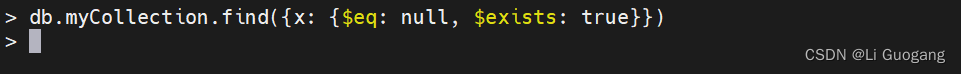 如果仅想匹配键值为 null 的文档,则需要检查该键的值是否为 null,并且通过 "$exists"条件确认该键已存在。