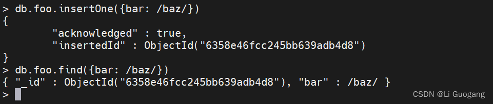 "insertedId" : ObjectId("6358e513cc245bb639adb4d9")