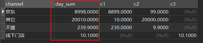 ( select *,sum(amount) over (partition by channel) as day_sum from report1 where date=to_date('2021-05-04','yyyy-MM-dd') ) as t1