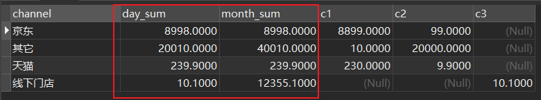 sum)+分組(group by)做行專列(當然postgresql也有其他很好用的行專列擴展,這裏就不介紹啦~)另一個是使用窗口函數(over)對明細提前做按渠道的窗口匯總,這樣渠道日合計(行)的數據就有啦~