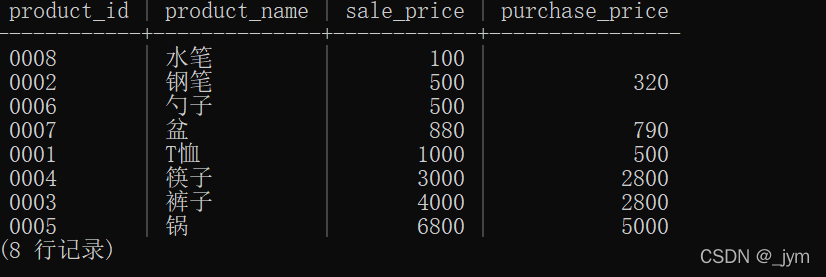 对于列里面数据有NULL的,会事先去掉NULL再计算。如AVG(purchase_price),分母是6而不是8。