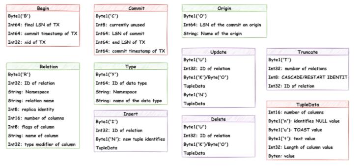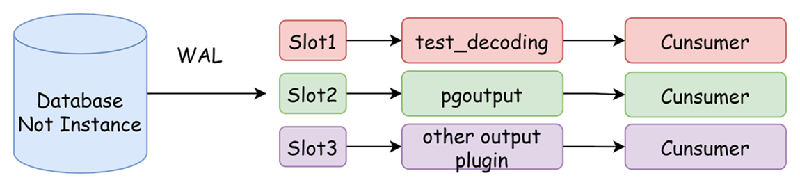 输出插件负责将WAL日志解码为可读的格式,常用的插件用test_decoding(多用来测试),pgoutput(默认使用),wal2json(输出为json)。PostgreSQL定义了一系列回调函数,我们除了使用上述插件,可以通过回调函数编写自己的输出插件。
