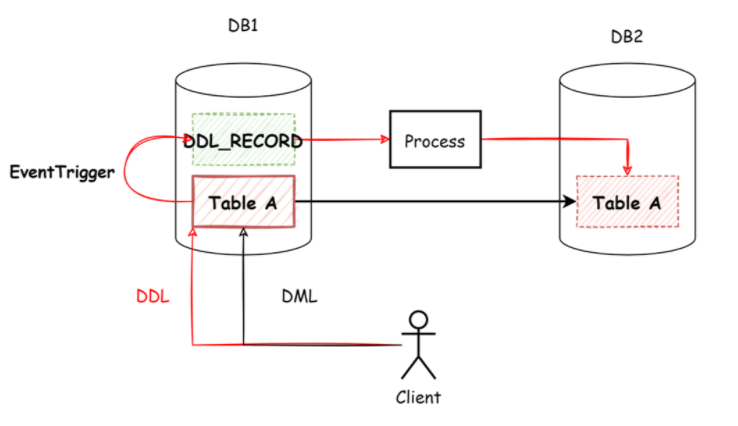 1. 使用事件触发器感知表结构变更,记录到DDL_RECORD表中,并将该表通过逻辑复制进行发布。
